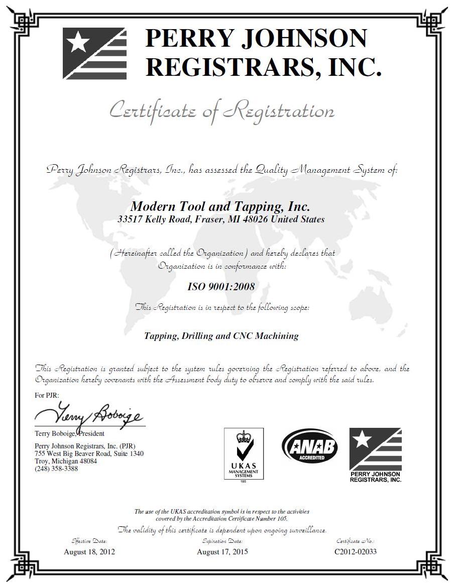 Modern Tool & Tapping 33517 Kelly Road Fraser, MI 48026 Phone: (586) 777-5144 Fax: (586) 777-5184 Email: info@moderntooltapping.com